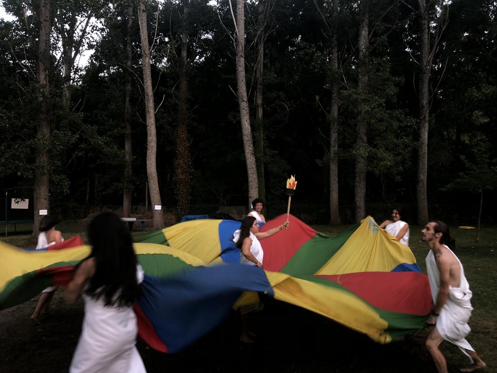 Programa de multiactividades. Los grupos se distribuyen por edades. Realizan 6 actividades diferentes a lo largo del día que se complementan con salidas al campo. Todos los días después de cenar organizamos veladas con juegos de animación. También habrá Olimpiadas con su respectiva ceremonia de apertura y clausura y con entrega de medallas.